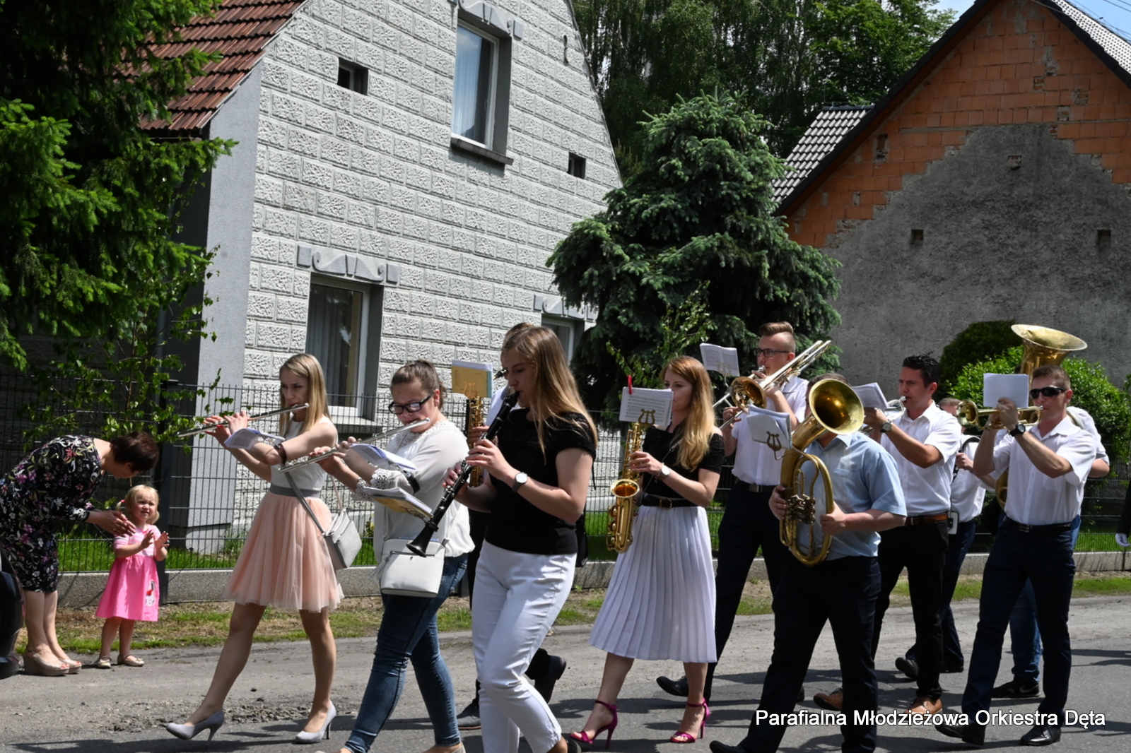 Po półrocznej kwarantannie z powodu koronavirusa COVID-19, pierwszą uroczystością kościelną jaką zagraliśmy w tym roku było Boże Ciało, 11 czerwca 2020. Nie było nam lekko grać w maseczkach, które obowiązkowo musieli mieć założone wszyscy uczestniczący w procesji.