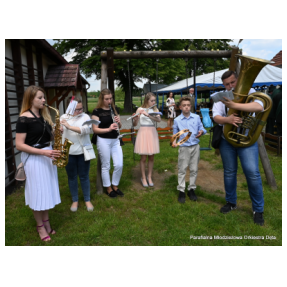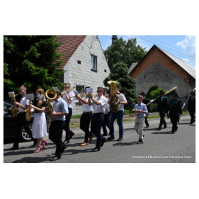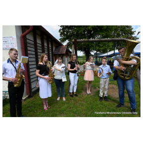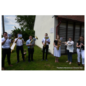 Z powodu pandemi, tegoroczne dożynki parafialne odbyły się bardzo skromnie i mniejszym gronie, nie mogło jednak zabraknąć muzyki oraz naszej orkiestry.