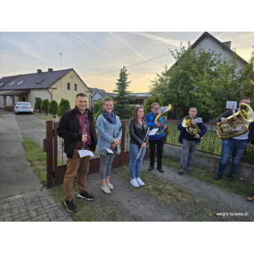 Przy dźwiękach parafialnej orkiestry dętej, która jak zawsze nadała wydarzeniu wyjątkowego, podniosłego charakteru, mieszkańcy naszej parafii wraz z księdzem proboszczem wzięli udział w modlitwie różańcowej przed figurą Matki Bożej Fatimskiej.