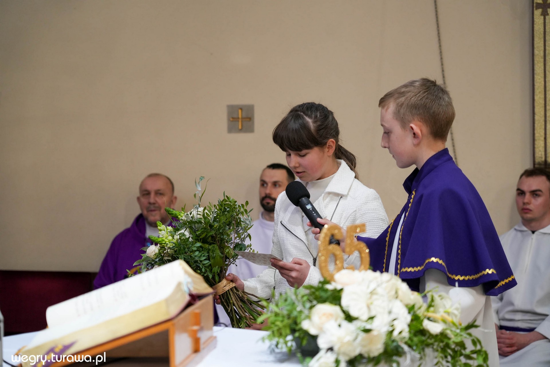 W sobotę, 12 kwietnia, nasz drogi ksiądz Tadeusz obchodził swoje 65. urodziny. Z tej okazji o godzinie 12:00 została odprawiona uroczysta Msza Święta, którą koncelebrowali ksiądz Artemiusz oraz ksiądz Kała. Oprawę muzyczną zapewniła nasza Parafialna Młodzieżowa Orkiestra Dęta wraz ze scholą, tworząc wyjątkową i podniosłą atmosferę.