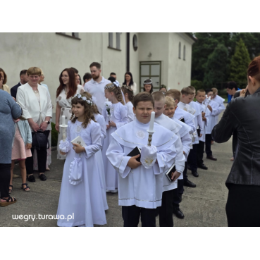 W niedzielę, 8 czerwca 2025 roku o godz. 10:30, 19 dzieci z naszej parafii po raz pierwszy przystąpiło do sakramentu Pierwszej Komunii Świętej. Uroczystą Mszę Świętą uświetniła oprawa muzyczna w wykonaniu parafialnej orkiestry dętej, która nadała wydarzeniu wyjątkowy i podniosły charakter. To piękne i wzruszające wydarzenie zgromadziło licznie rodziny oraz parafian, tworząc atmosferę wspólnoty i modlitwy.