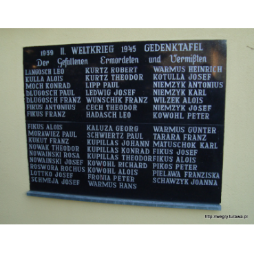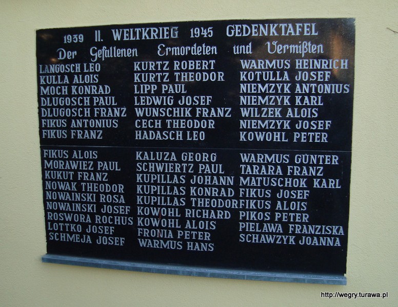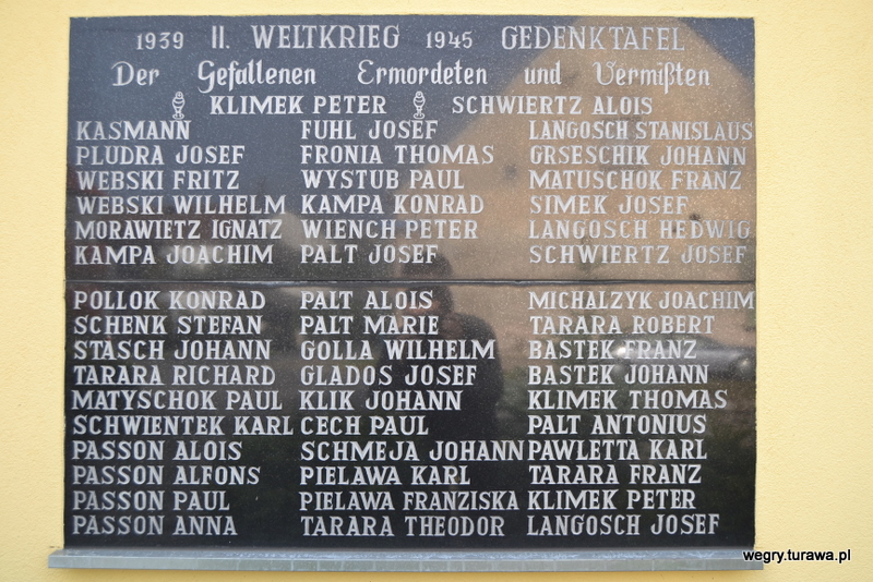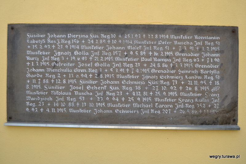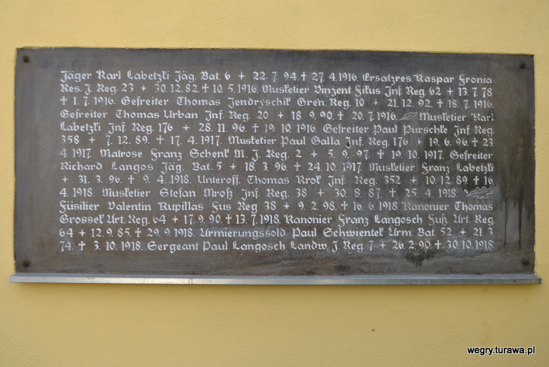 Tablice z nazwiskami mieszkańców Węgier, poległych na I i II Wojnie Światowej: