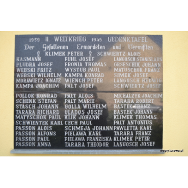 Pomnik ku czci poległych w latach 1914-1918, 1939-1945 został wzniesiony na pamiątkę żołnierzy, którzy stracili swe życie na pierwszej i drugiej Wojnie Światowej.