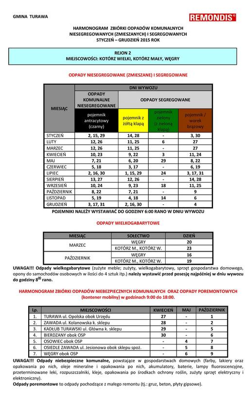 Harmonogram zbiórki odpadów komunalnych na rok 2015 znajdziecie tutaj