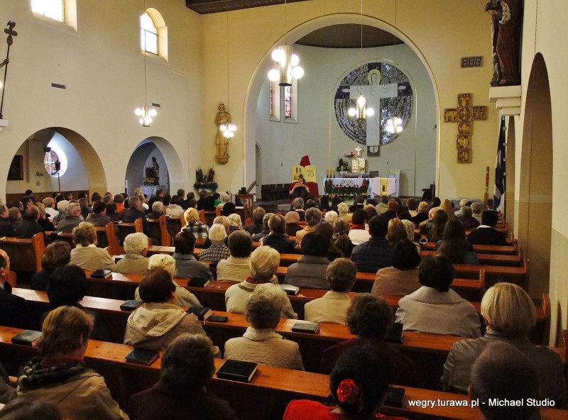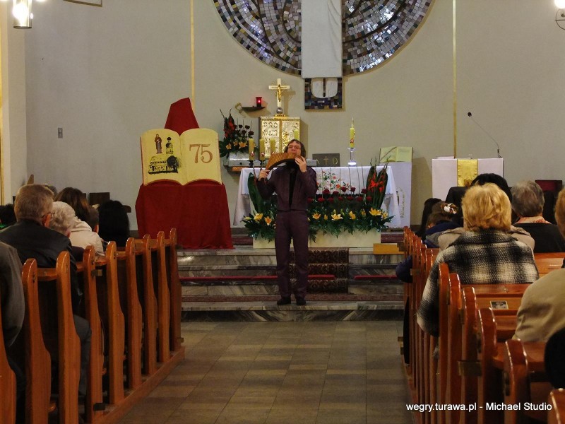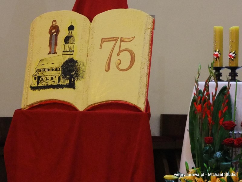 W niedzielę, 26 października, nasz kościół obchodził swoje 75- lecie poświęcenia. Uroczysta msza św. rozpoczęła się o godz. 10:30 na której zostało zaproszonych dużo gości oraz księży, m. in. ks. Franciszek Lerch, który był najdłużej naszym proboszczem (25 lat). Oprawę muzyczną mszy św. zapewniła nasza Orkiestra Dęta oraz gość specjalny Artur Thomas (uczeń Edwarda Simoni) na fletni pana. Od godz. 15:00 rozpoczęło się 20 min. nabożeństwo a następnie, gość specjalny, Artur Thomas zagrał koncert piosenki o tematyce religijnej (m.in. Barka, Amazing Grace). W sali OSP Węgry wystąpiła natomiast grupa teatralna z przedstawieniem pt. "Santo Subito". Muzycznie i aktorsko zaprezentowali nam ważne chwilę z życia św. Jana Pawła 2. Po występie ks. Proboszcz zaprosił wszystkich na poczęstunek.
