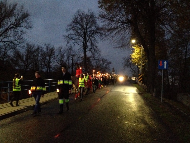Dnia 11.11.2015 roku o godzinie 16:30 wszyscy mieszkańcy świętowali obchody Św. Marcina. Jak co roku, już tradycyjnie, nasza wioska rozbłysła wieloma światełkami. Wszyscy zebrali się pod budynkiem Straży Pożarnej. Uroczystość rozpoczął Św. Marcin- jak tradycja nakazuje- na koniu. Za nim, z lampionami i pochodniami szły dzieci, po czym orkiestra i wszyscy mieszkańcy. Przemarsz zakończył się na placu zabaw. Organizatorzy przygotowali dla uczestników mały poczęstunek.
