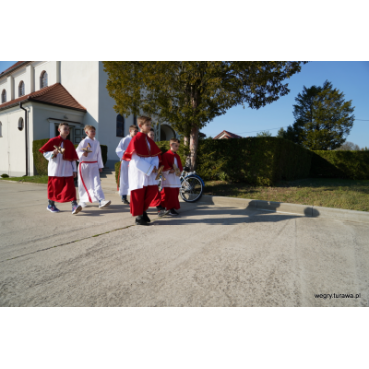 W tym roku obchodziliśmy wspomnienie świętego Marcina już w sobotę 9 listopada. Jak zawsze, po krótkim nabożeństwie udaliśmy się razem ze św. Marcinem na plac zabaw, gdzie wszyscy zgromadzeni zostali poczęstowani smacznymi rogalami oraz gorącą herbatą.