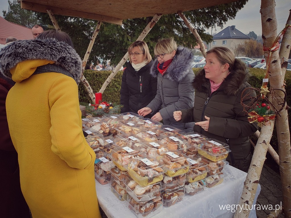 Po kilkuletniej przerwie udało się znów zorganizować kiermasz świąteczny przy współpracy z Gminą Turawa, Szkołą Podstawową w Węgrach, OSP Węgry oraz Panią Sołtys. Można było zakupić stroiki świąteczne, pierniki, miód oraz napić się grzanego wina. Na sali odbywały się pokazy przygotowane przez dzieci. Wystąpiły m.in. dzieci z przedszkola w Węgrach, uczniowie Społecznej Szkoły Podstawowej w Węgrach, Orkiestra Dęta OSP Węgry, pokaz sztuki walki capoeira i wiele innych. Wszystkie zebrane pieniądze przeznaczone zostaną na Szkołę oraz Przedszkole w Węgrach.