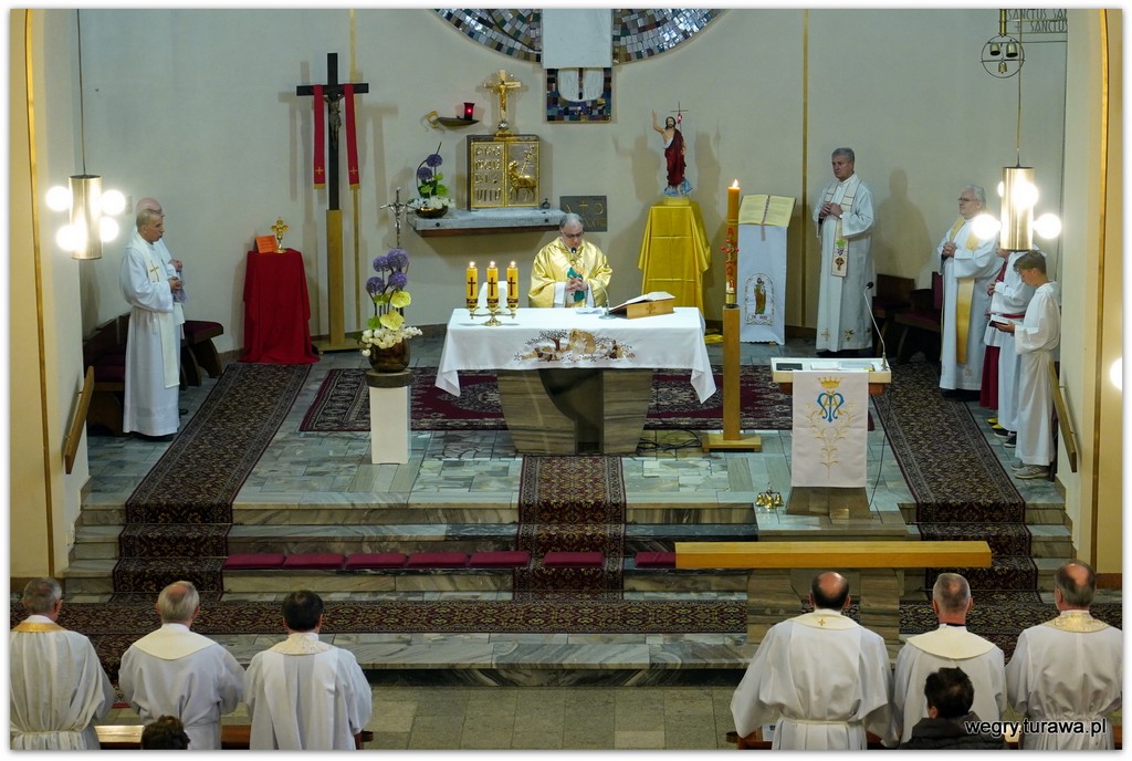 W dniu dzisiejszym w naszej parafii miała miejsce Msza Święta, którą odprawił pochodzący z naszej parafii ks. Józef Pikos wraz z kapłanami, którzy byli razem z nim wyświęceni w 1983 roku. Podczas Liturgii dziękowaliśmy Bogu za dar kapłaństwa jubilatów, prosiliśmy o wszelkie łaski potrzebne na drodze ich powołania oraz prosiliśmy o łaskę nieba dla tych, którzy już odeszli do wieczności. Kazanie wygłosił nasz proboszcz – ks. Tadeusz Muc. Zwrócił w nim szczególną uwagę na cechy, którymi powinien się odznaczać święty kapłan, takie jak bezwarunkowe zaufanie i powierzenie się Jezusowi czy konieczność rezygnacji ze swoich marzeń na rzecz służby powierzonej mu owczarni. Zaznaczył też fakt, że kapłan to człowiek, wobec którego reakcje społeczne mogą być całkowicie skrajne – ksiądz może być jednocześnie najbardziej kochany i najbardziej nienawidzony, jego poczynania mogą być przez jednych doceniane, a przez innych niszczone. Zachęcił również wszystkich zebranych do odkrycia swojego powołania już nie w kontekście wyboru drogi życiowej, ale tego co możemy od siebie dać światu. Pod koniec Mszy Świętej odśpiewaliśmy wspólnie dziękczynne Te Deum.