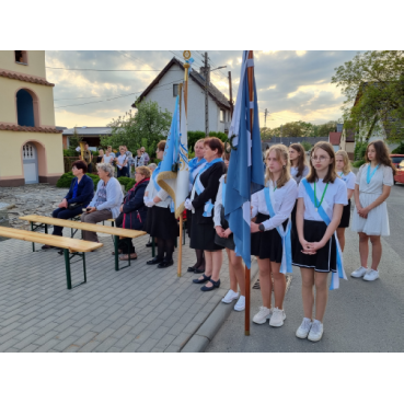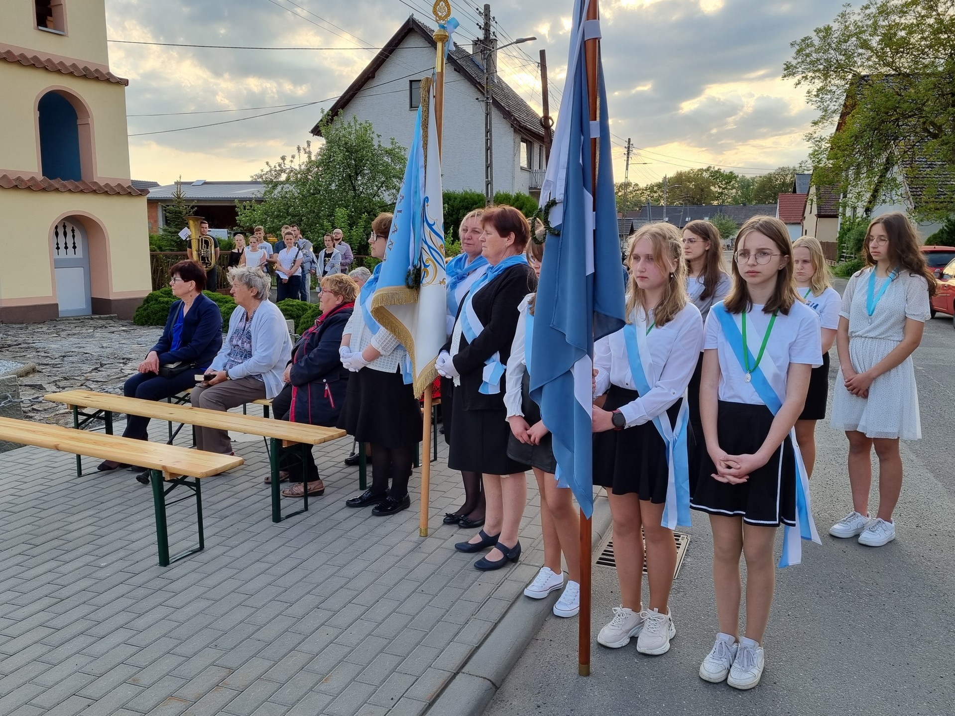 Po przerwie wywołanej przez COVID'19 wróciliśym do wspaniałej tradycji, która już kilka lat odbywała się w naszej parafii, w dniu 13 maja obchodzimy wspomnienie objawień Fatimskich. Po mszy świętej w intencji parafian, procesją z koronką różańca udaliśmy sie do pomnika poległych w Węgrach gdzie odbyło się krótkie nabożeństwo. Oprawę muzyczną zapewniła Parafialna Młodzieżowa Orkiestra Dęta, Blaskapelle St. Joseph