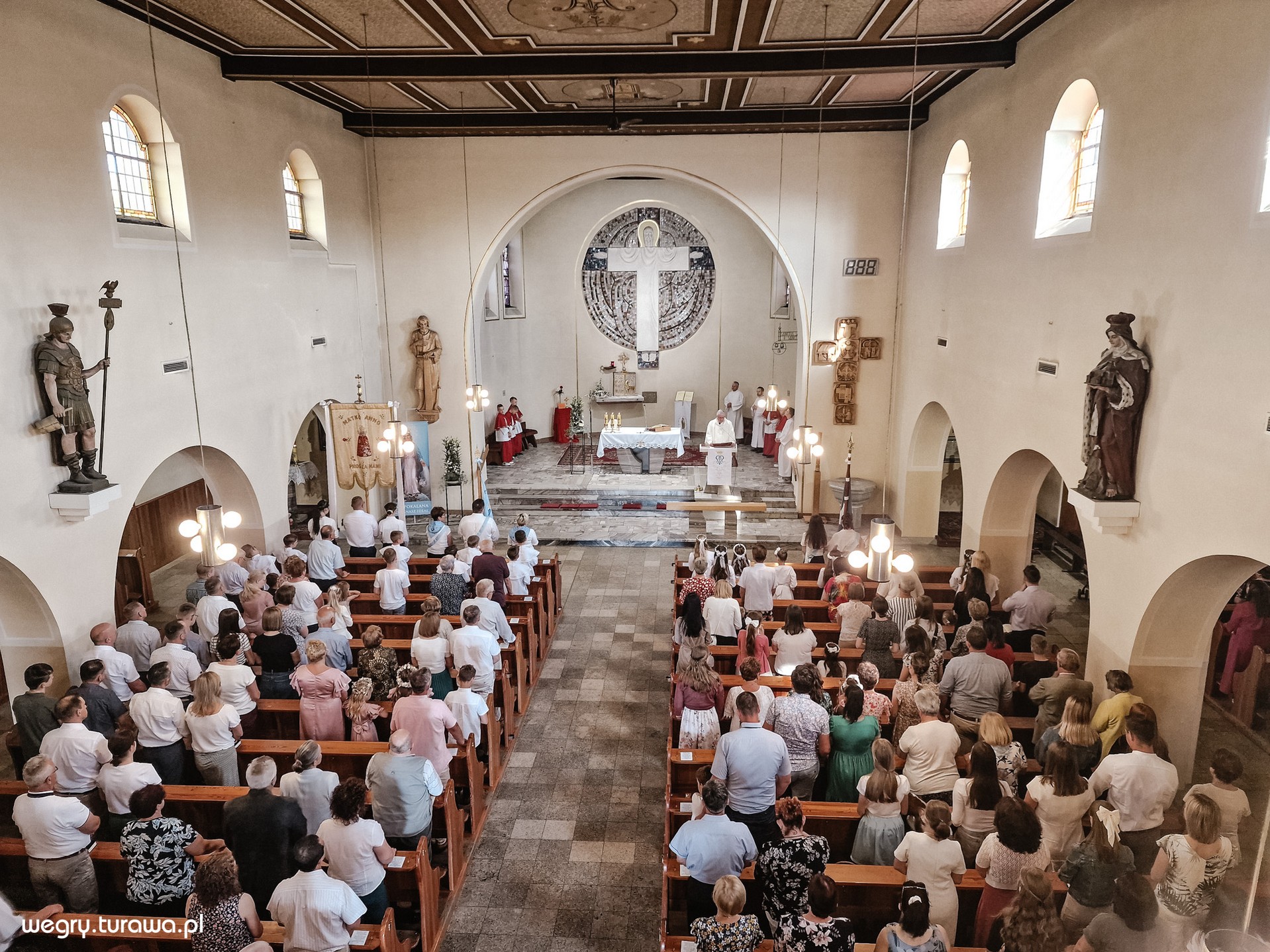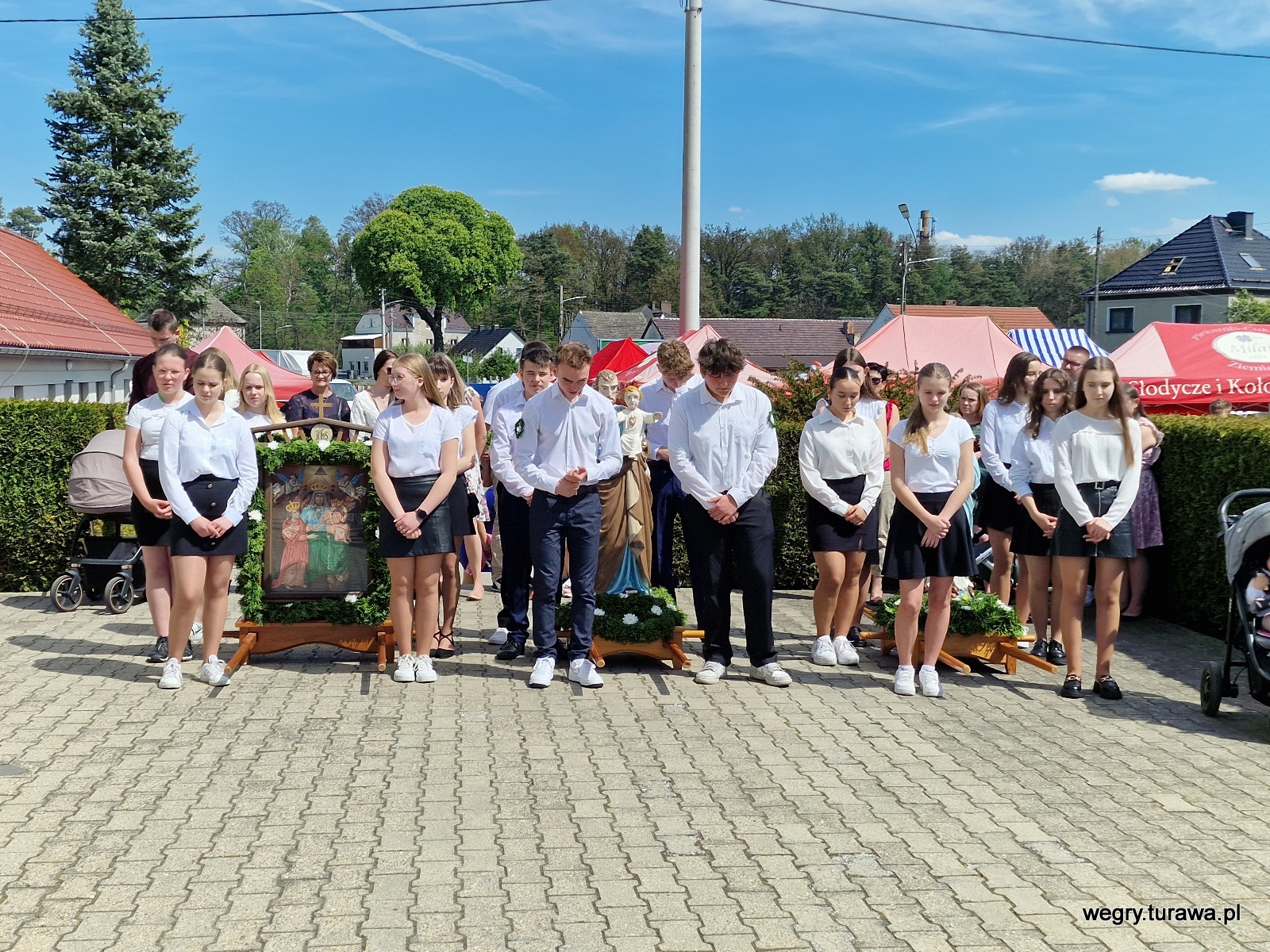 Dziś w naszej parafii odbyły się uroczystości związane z Bożym Ciałem, które przyciągnęły liczne grono wiernych. Po uroczystej Mszy Świętej, wierni wzięli udział w tradycyjnej procesji ulicami Węgier, zatrzymując się przy czterech ołtarzach przygotowanych przez mieszkańców.