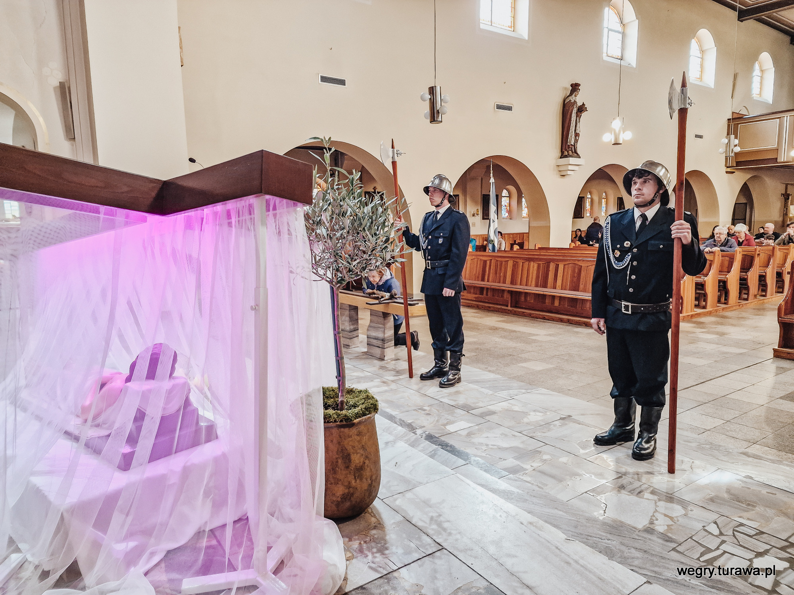 Wielka Sobota to dzień kiedy to ludzie idą do kościoła, aby święcić pokarmy, zwane święconką. Tradycyjnie w koszykach znajdują się chleb, jajka, sól, kiełbasa i inne potrawy. Święcenie ma symboliczne znaczenie, wiąże się z oczekiwaniem na zmartwychwstanie Chrystusa. Przy grobie natomiast ustawiona jest straż, która pełni warte. Wierni zasiadają przy symbolicznym grobie Jezusa Chrystusa, modlą się i czuwają przez całą noc, aby oddać hołd zmarłemu Panu. Ta praktyka jest kontynuacją tradycji, która sięga średniowiecza i jest głęboko zakorzeniona w religijnej obrzędowości wielkanocnej.