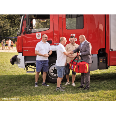 Podczas wydarzenia nasza jednostka OSP została uhonorowana torbą medyczną, co jest istotnym wsparciem dla naszej działalności. Dla najmłodszych przygotowano różnorodne atrakcje, w tym puszczanie baniek mydlanych, przeciąganie liny oraz zabawy z postaciami z bajek, które przyniosły wiele radości.