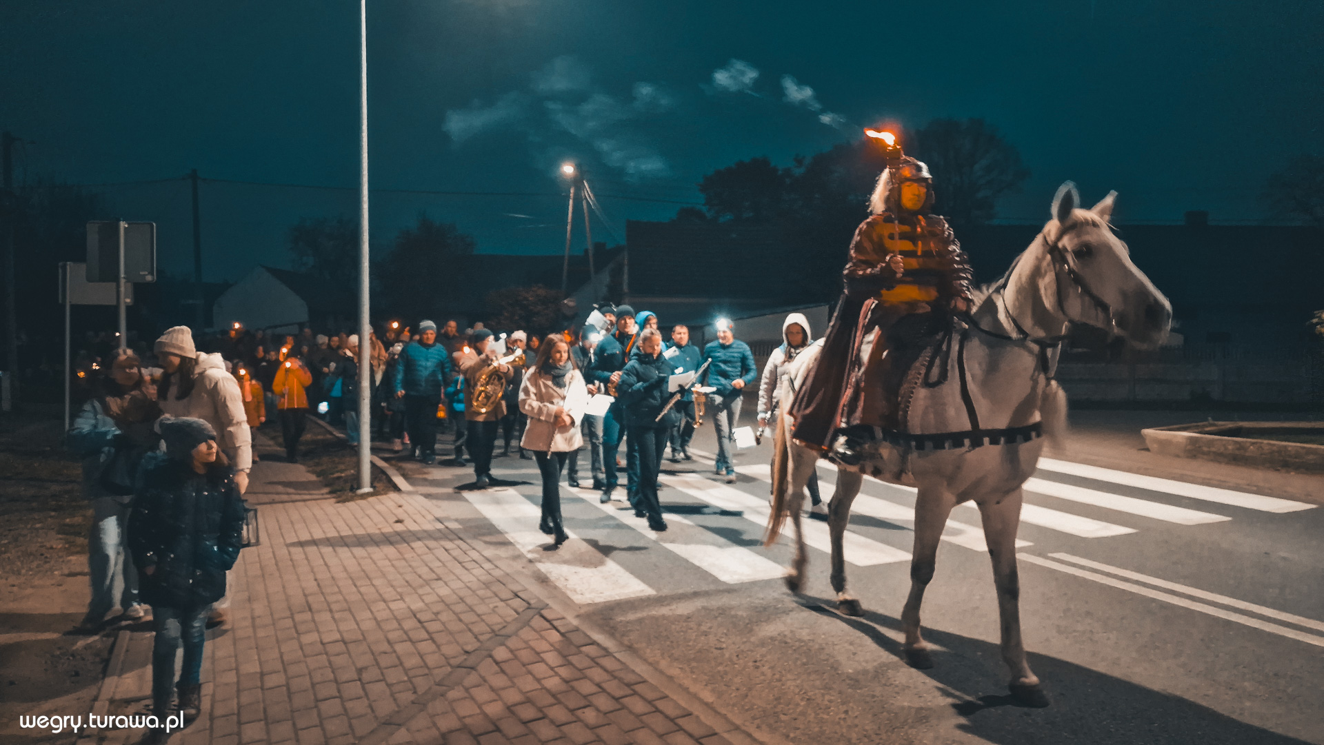 ✨ W przeddzień wspomnienia św. Marcina ulicami Węgier przeszedł korowód na czele z św. Marcinem na koniu, a za nim mieszkańcy z kolorowymi latarniami i pochodniami. Muzyka marszowa poprowadziła wszystkich na plac zabaw, gdzie przy ognisku oraz dźwiękach Parafialnej Orkiestry, można było rozgrzać się herbatą i skosztować pysznych rogalików. 🔥🎶
