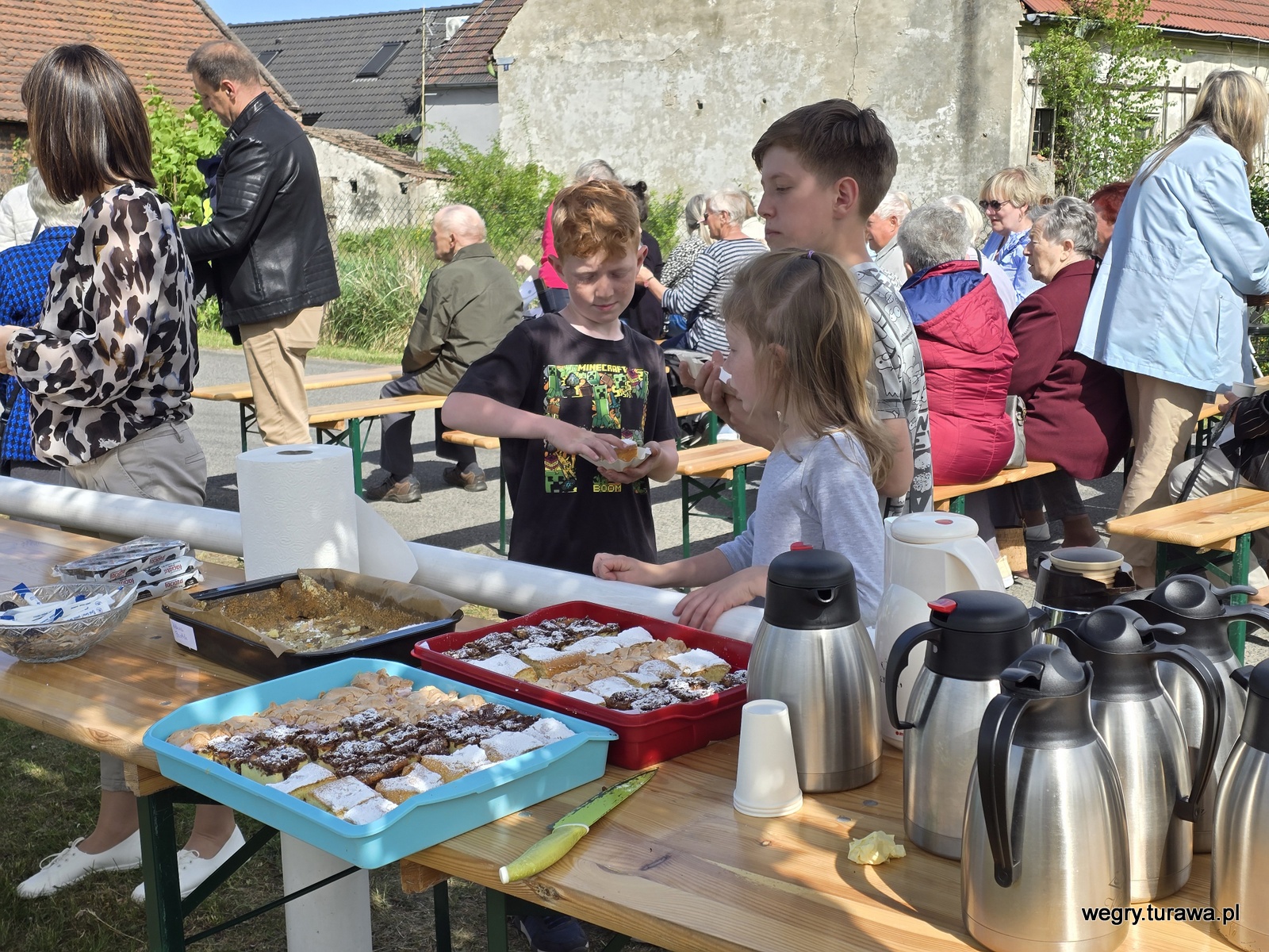 Po uroczystym nabożeństwie, organizatorzy zaprosili wszystkich uczestników na miłe spotkanie przy kawie i cieście, które stanowiło doskonałą okazję do wspólnego spędzenia czasu i rozmów. Dziękujemy wszystkim, którzy wzięli udział w tej uroczystości, a także osobom zaangażowanym w organizację wydarzenia.- sołtysowi naszej Wsi wraz z radą sołecką