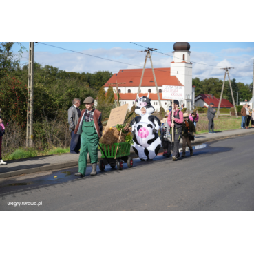 O 14:00 wyruszył pierwszy od 2014 roku korowód dożynkowy, w którym udział wzięli mieszkańcy naszej miejscowości. Mieszkańcy metodą głosowań przyznali miejsca: