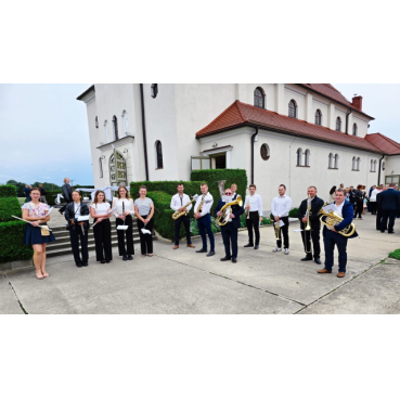 Przy dźwiękach parafialnej orkiestry dętej, która jak zawsze nadała wydarzeniu wyjątkowego, podniosłego charakteru, mieszkańcy naszej parafii wraz z księdzem proboszczem wzięli udział w modlitwie różańcowej przed figurą Matki Bożej Fatimskiej.